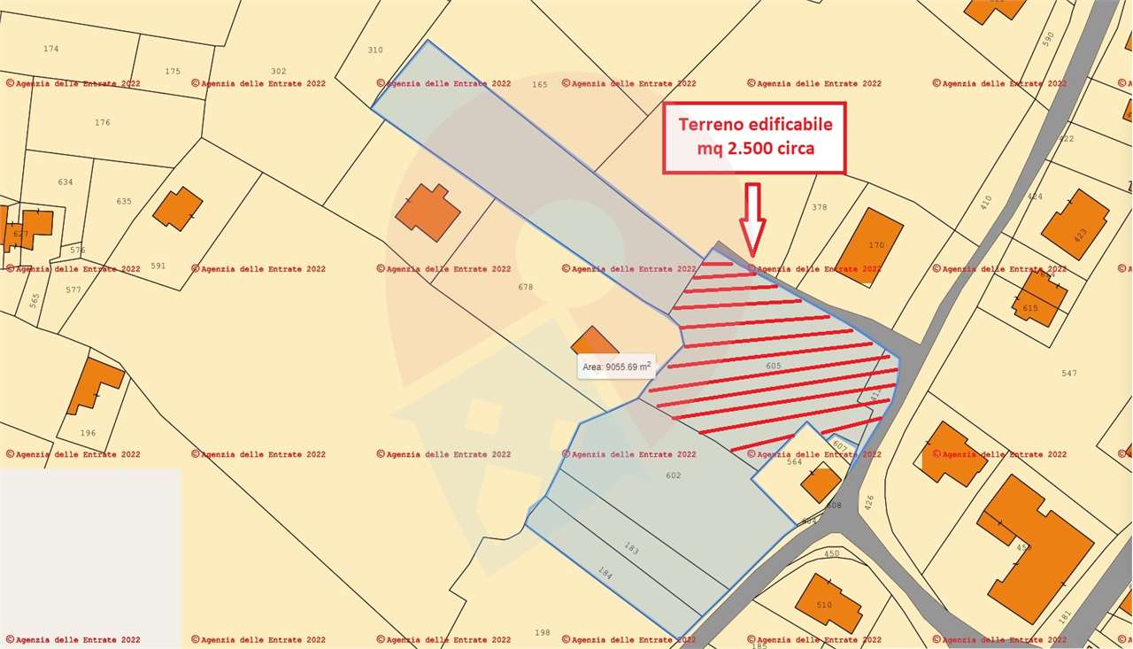 Nei pressi della Chiesa di San Rocco e dell'ufficio postale, proponiamo in vendita lotto di terreno per complessivi mq 9.000 circa, di cui mq 2.500 edificabili e mq 6.500 agricoli.