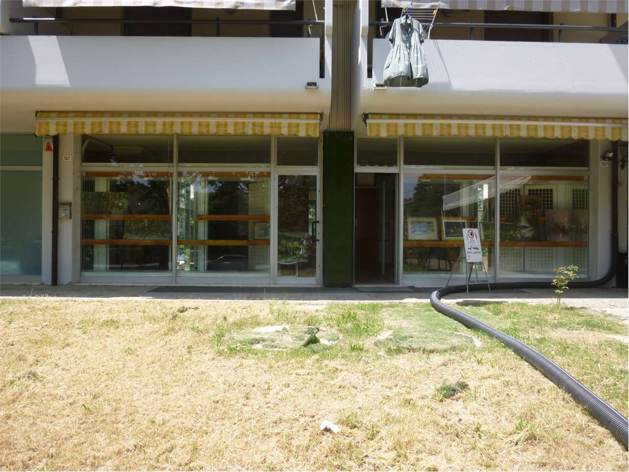 Affittasi locale uso negozio di circa 77 mq con due ampie vetrine e locale uso deposito di 26 mq al piano interrato e garage. 1.000 EURO mensili.