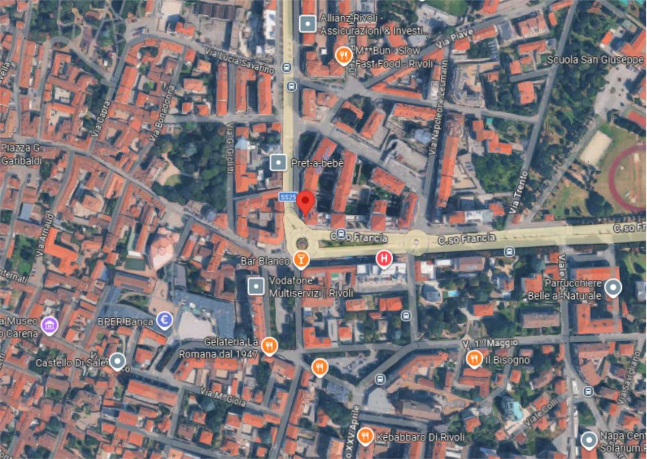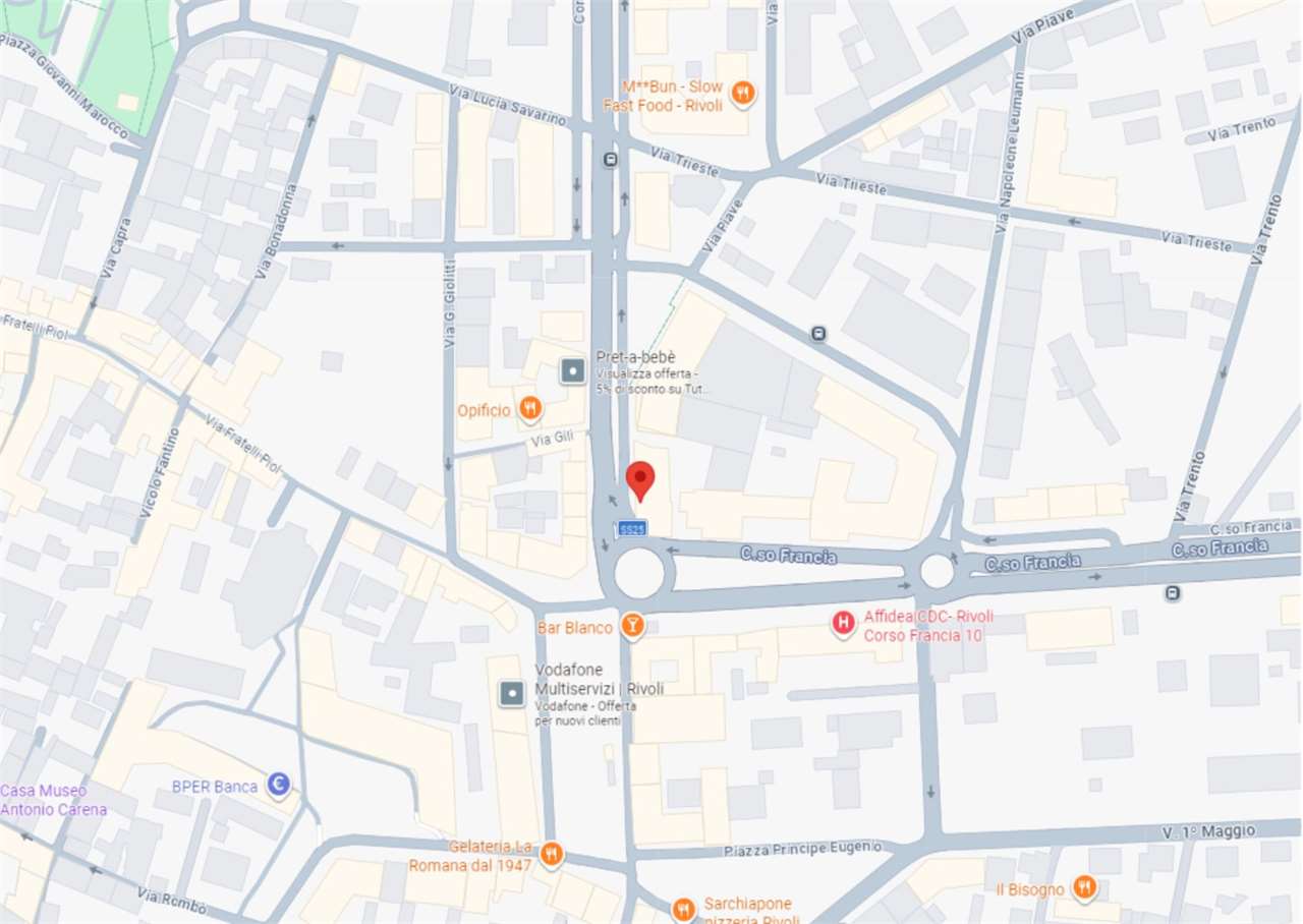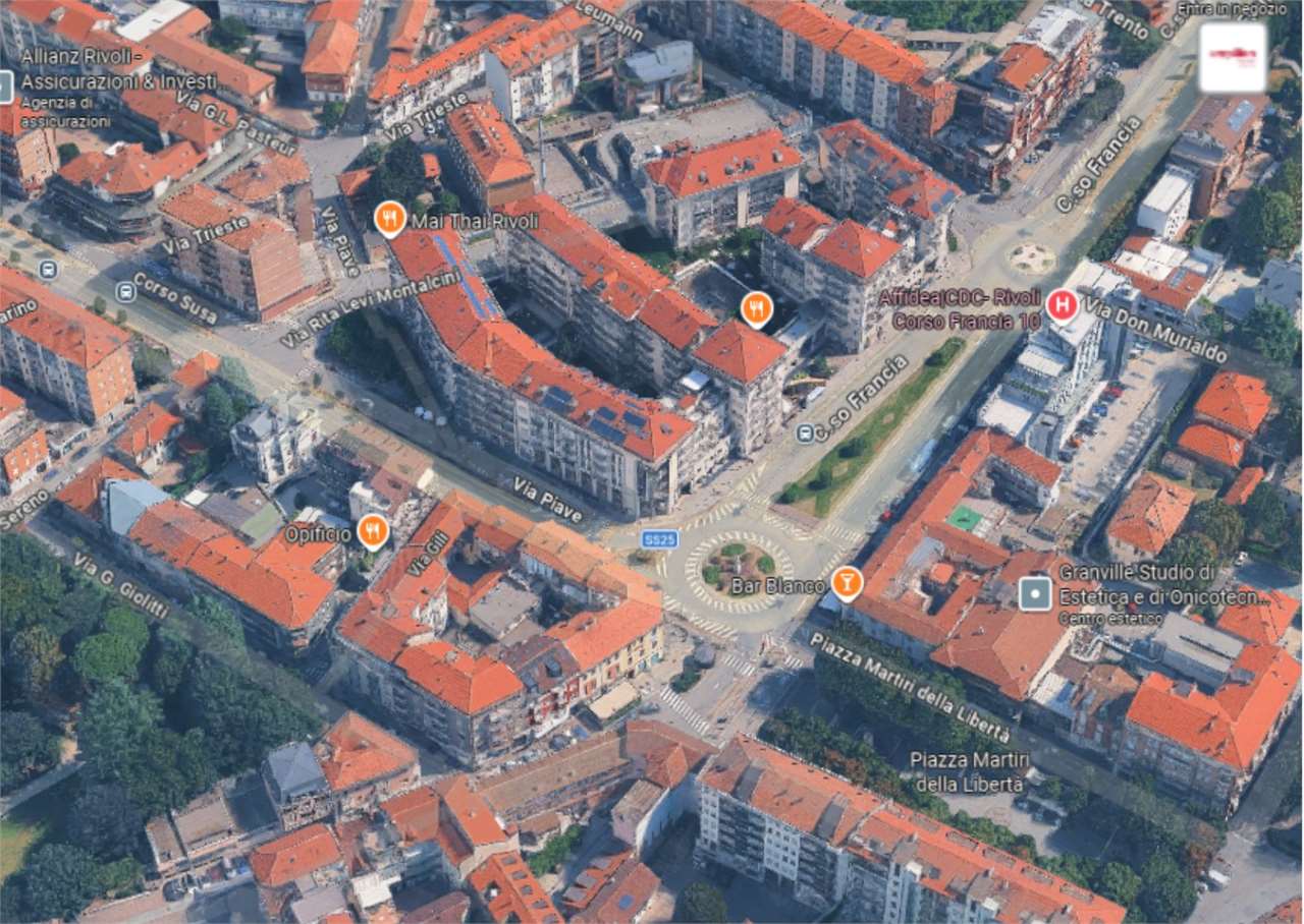 A Rivoli, in zona centrale, all'angolo con Corso Francia, in complesso polifunzionale con uffici e negozi, in zona di forte passaggio e ben servita.