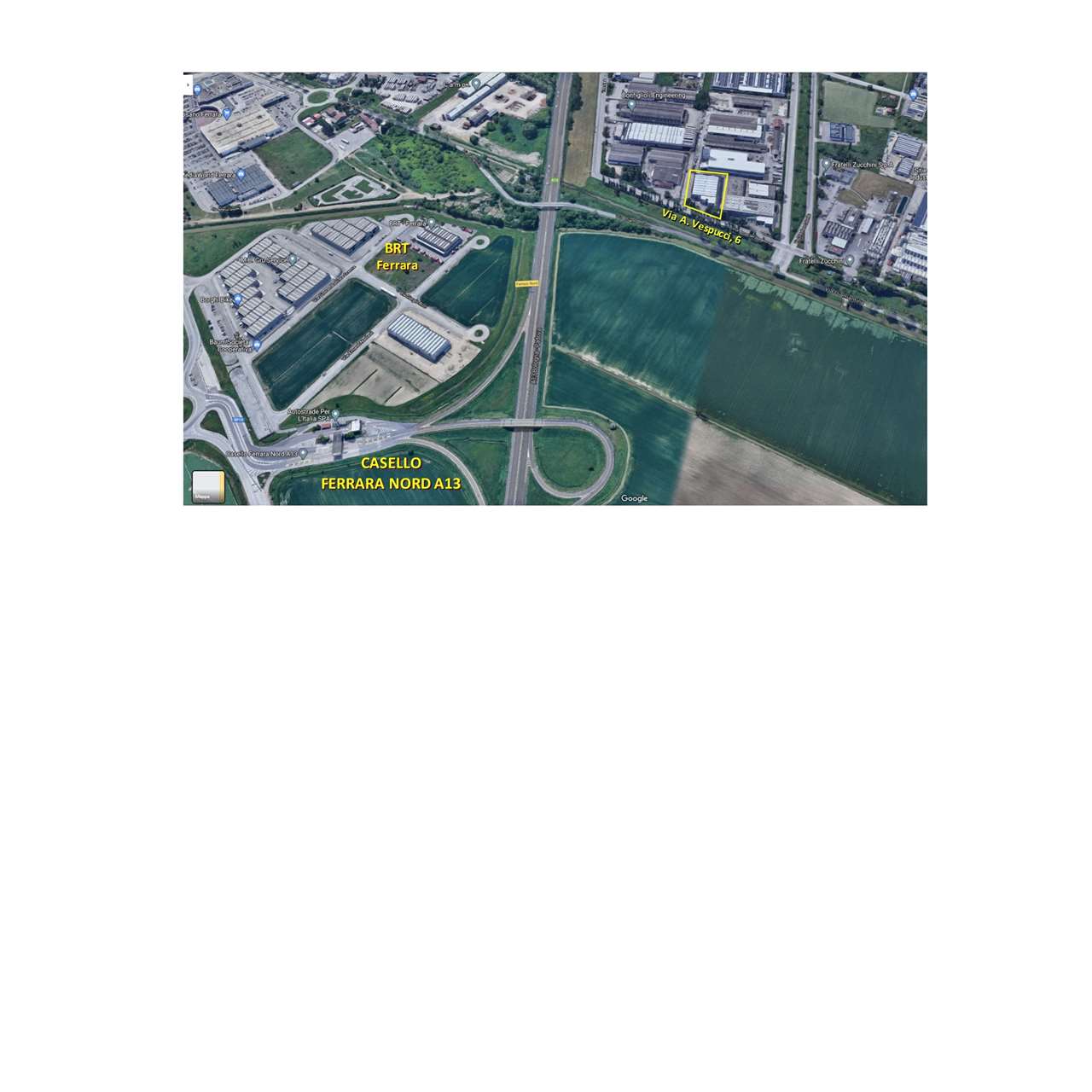 Immobilimpresa 10510986 – Riferimento Agenzia Diamantina ven – Capannone di 2650 MQ, comprendente palazzina per uffici, nella zona PMI di Ferrara Nord, vicino all'omonimo casello autostradale.