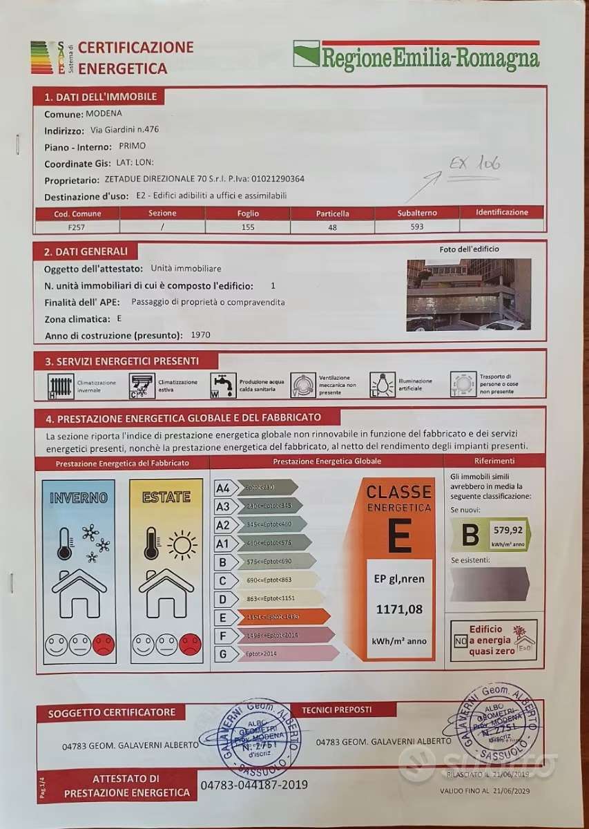 Immobilimpresa 10536338 – Riferimento Agenzia V001462 – Vendesi Uffici a Modena Direzionale 70