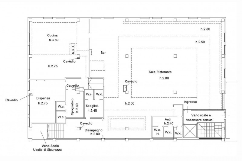 Ampio locale commerciale, precedentemente adibito a ristorante, a Ravenna (RA), Via Sergio Cavina 9-11. Situato al primo piano di un edificio co... Vedi di più