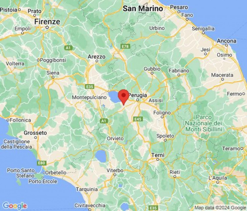 Il compendio è ubicato nel Comune di Perugia, Fraz. Mugnano, in Via Rapallo 32.