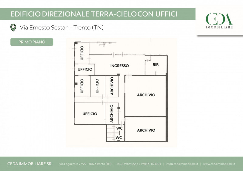 Immobilimpresa 10745293 – Riferimento Agenzia 4382 – Proponiamo in vendita a Trento nella zona commerciale e direzionale di Trento Nord ufficio al primo piano di oltre 450 mq sviluppato su un unico piano.